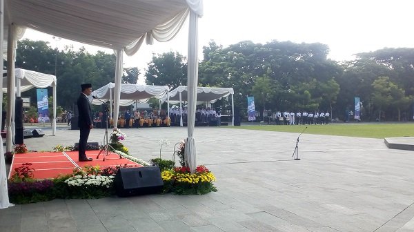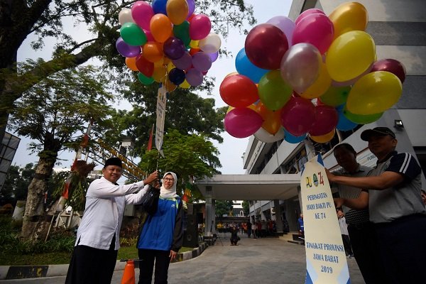 BANDUNG- Gubernur Jawa Barat, Mochamad Ridwan Kamil mempimpin upacara peringatan HUT ke-74…