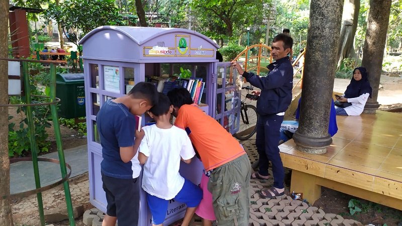KOTA BANDUNG-Sebuah lemari buku berbentuk mirip kotak telepon merah khas Inggris tersebar…