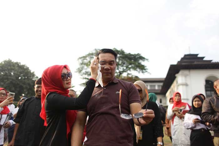 Kang Emil Belepotan Tepung Terigu di Lomba Agustusan