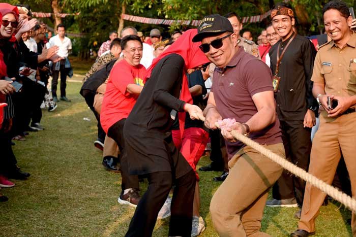 Ridwan Kamil Menang Lomba Tarik Tambang di Gedung Sate