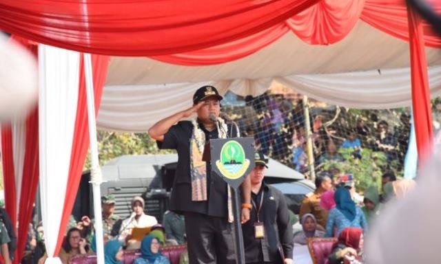 Wakil Gubernur Jawa Barat Uu Ruzhanul Ulum saat menjadi inspektur upacara dalam…