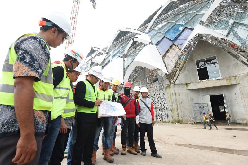BANDUNG-Gubernur Jawa Barat Ridwan Kamil meninjau proyek pembangunan Masjid Raya Al Jabbar…