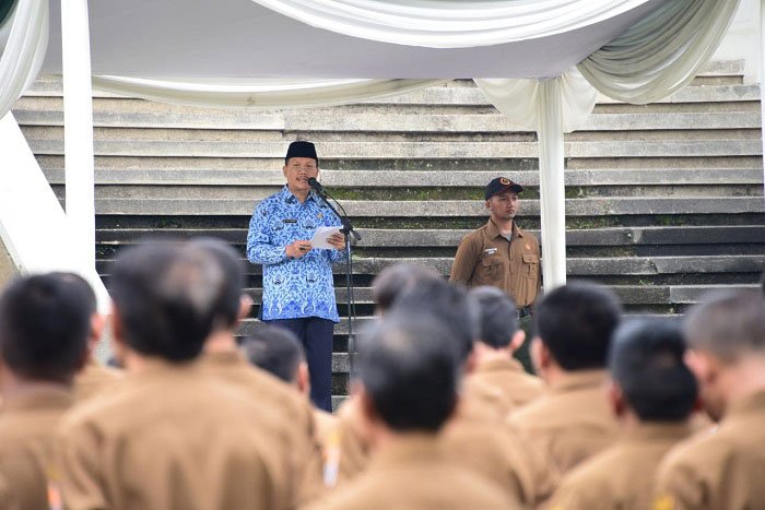 BANDUNG - Gubernur Jawa Barat Ridwan Kamil bersama seluruh ASN Setda Pemdaprov…