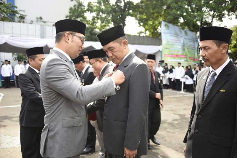 BANDUNG-Gubernur Jawa Barat, Mochamad Ridwan Kamil menghadiri upacara Hari Amal Bakti (HAB)…
