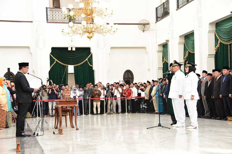 BANDUNG-Gubernur Jawa Barat Ridwan Kamil melantik Wali Kota dan Wakil Wali Kota…
