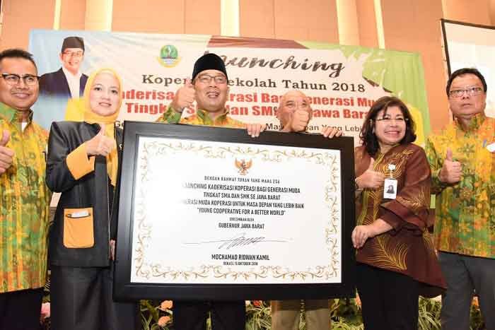 KOTA BEKASI-Gubernur Jawa Barat Ridwan Kamil meluncurkan program Koperasi Sekolah di Harris…