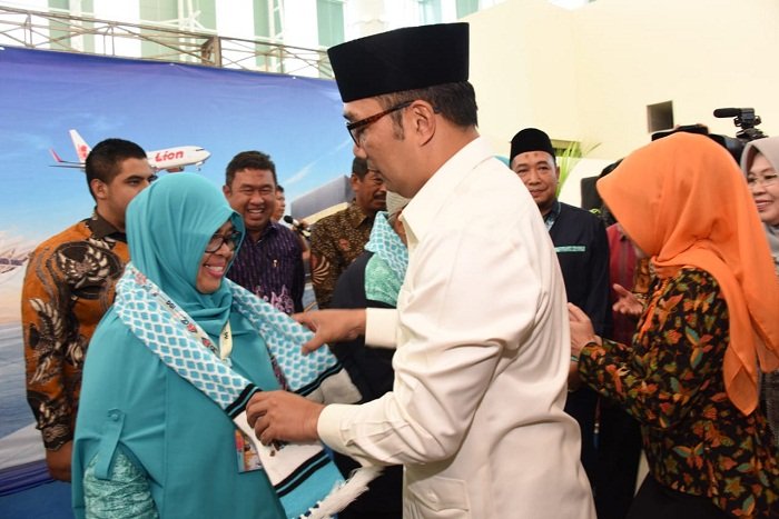 MAJALENGKA-Gubernur Jawa Barat Ridwan Kamil melepas jamaah umroh, yang diterbangkan perdana dari…