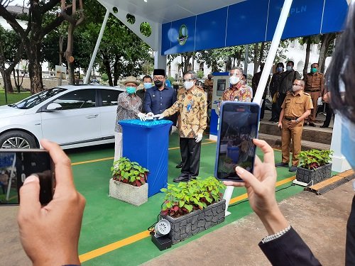 Gubernur Resmikan SPKLU Sumbangan PLN di Gedung Sate