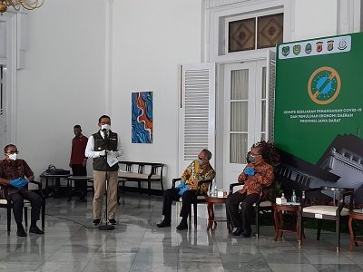 BANDUNG - Gubernur Jawa Barat (Jabar) Ridwan Kamil didampingi Kepala Kepolisian Daerah…