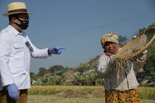 KOTA CIMAHI - Gubernur Jawa Barat (Jabar) Ridwan Kamil meninjau panen raya…