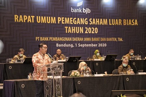 BANDUNG - Gubernur Jawa Barat (Jabar) Ridwan Kamil menghadiri Rapat Umum Pemegang…