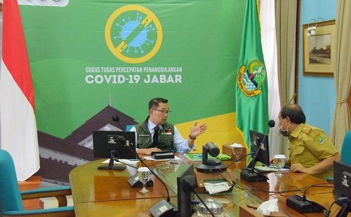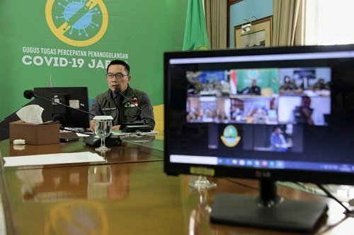KOTA BANDUNG -- Gubernur Jawa Barat (Jabar) Ridwan Kamil mengikuti video conference…
