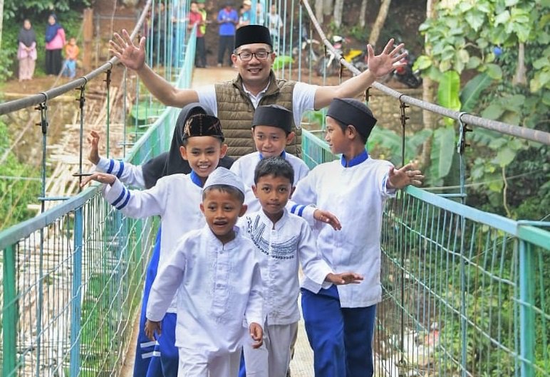 KAB. CIANJUR -- Gubernur Jawa Barat (Jabar) Ridwan Kamil meresmikan Jembatan Gantung…