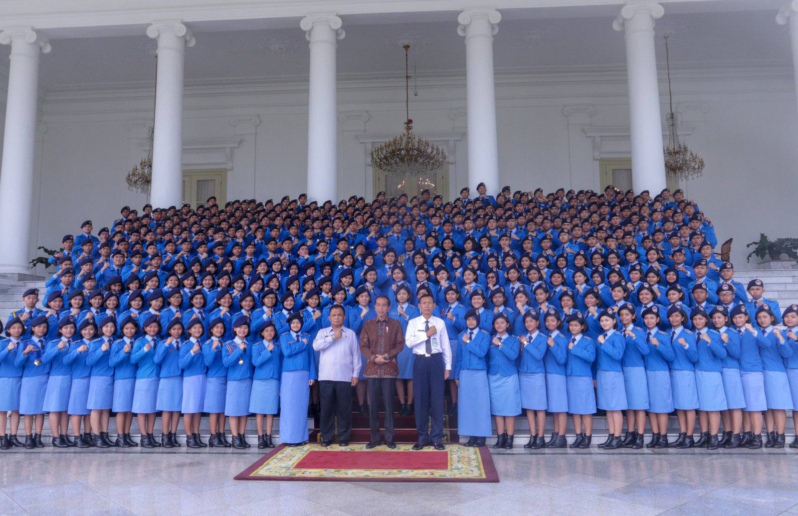 Presiden Jokowi berfoto bersama siswa SMA Taruna Nusantara 2019, di halaman Istana…