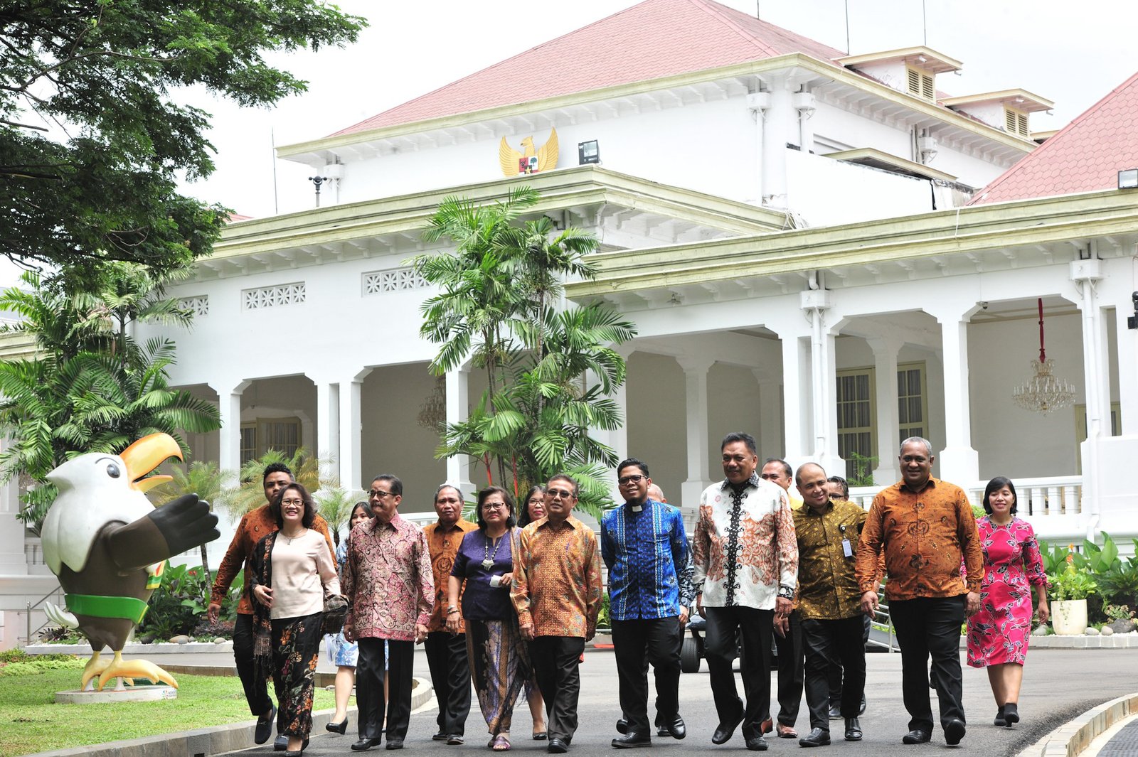 Pengurus PGI berjalan di komplek Istana Kepresidenan, Jakarta, usai diterima Presiden Jokowi,…