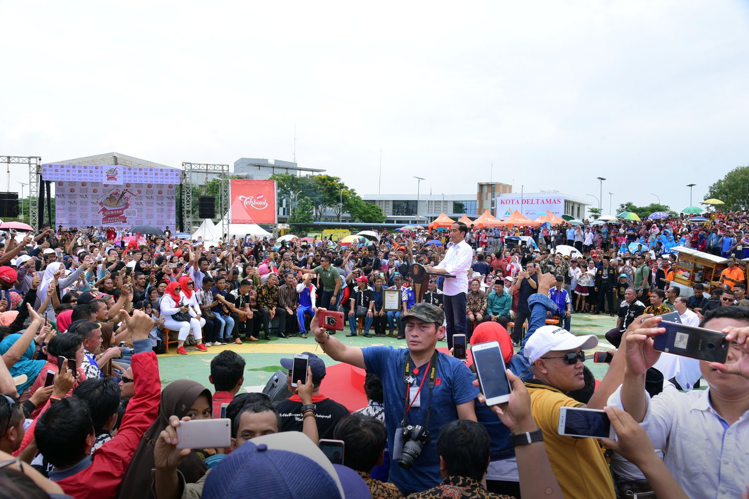 Presiden Jokowi memberikan sambutan pada acara Gebyar Bakso Merah Putih di Lapangan…