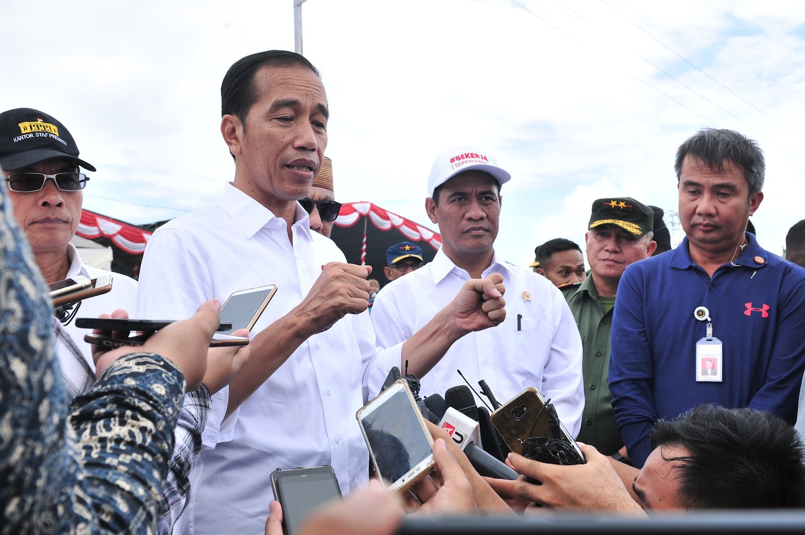Presiden Jokowi berdialog dengan penerima UMi saat berkunjung ke TPI di Sodohoa,…