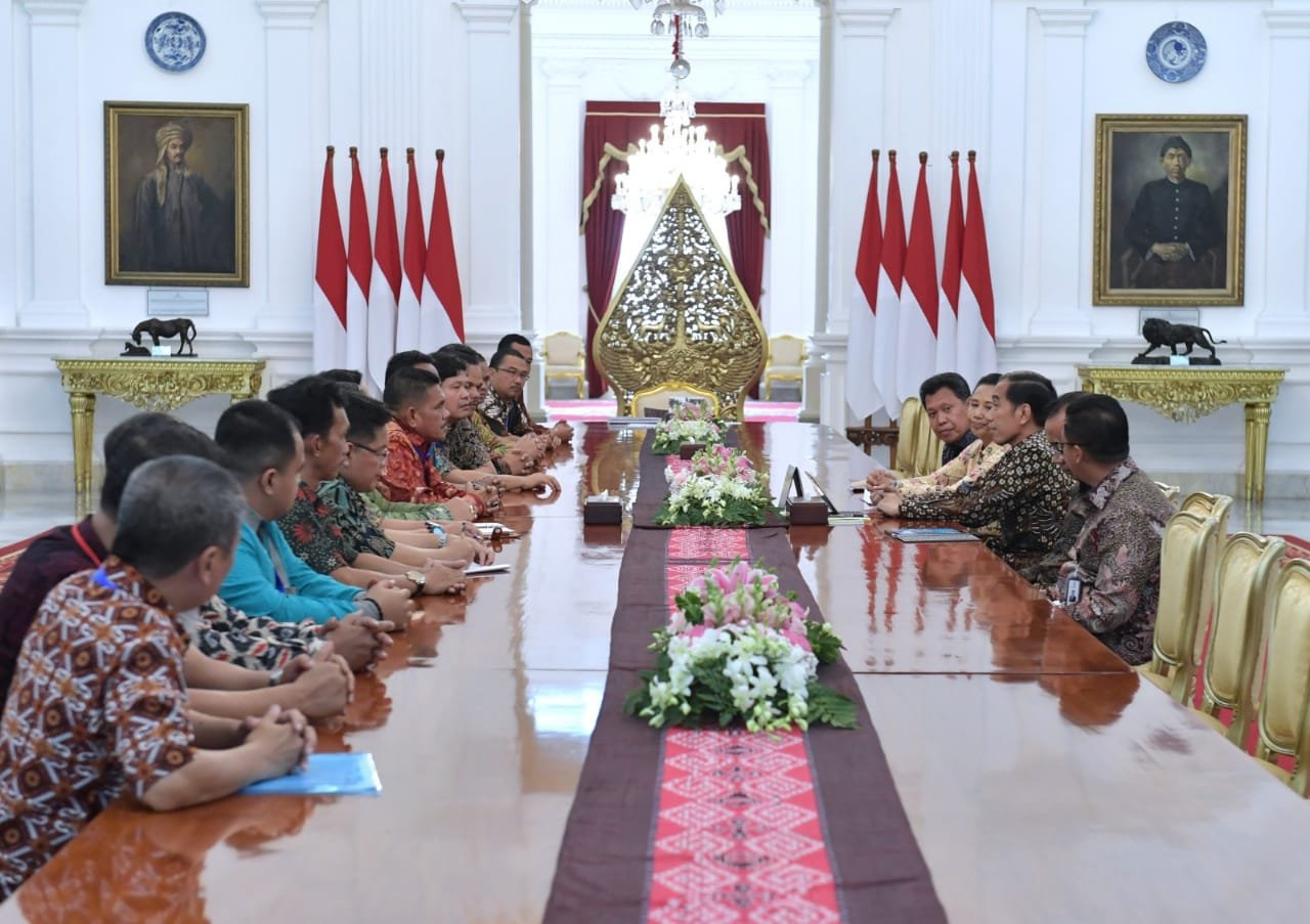 Presiden Jokowi didampingi sejumlah pejabat menerima pengurus dan perwakilan FSPBUN, di Istana…