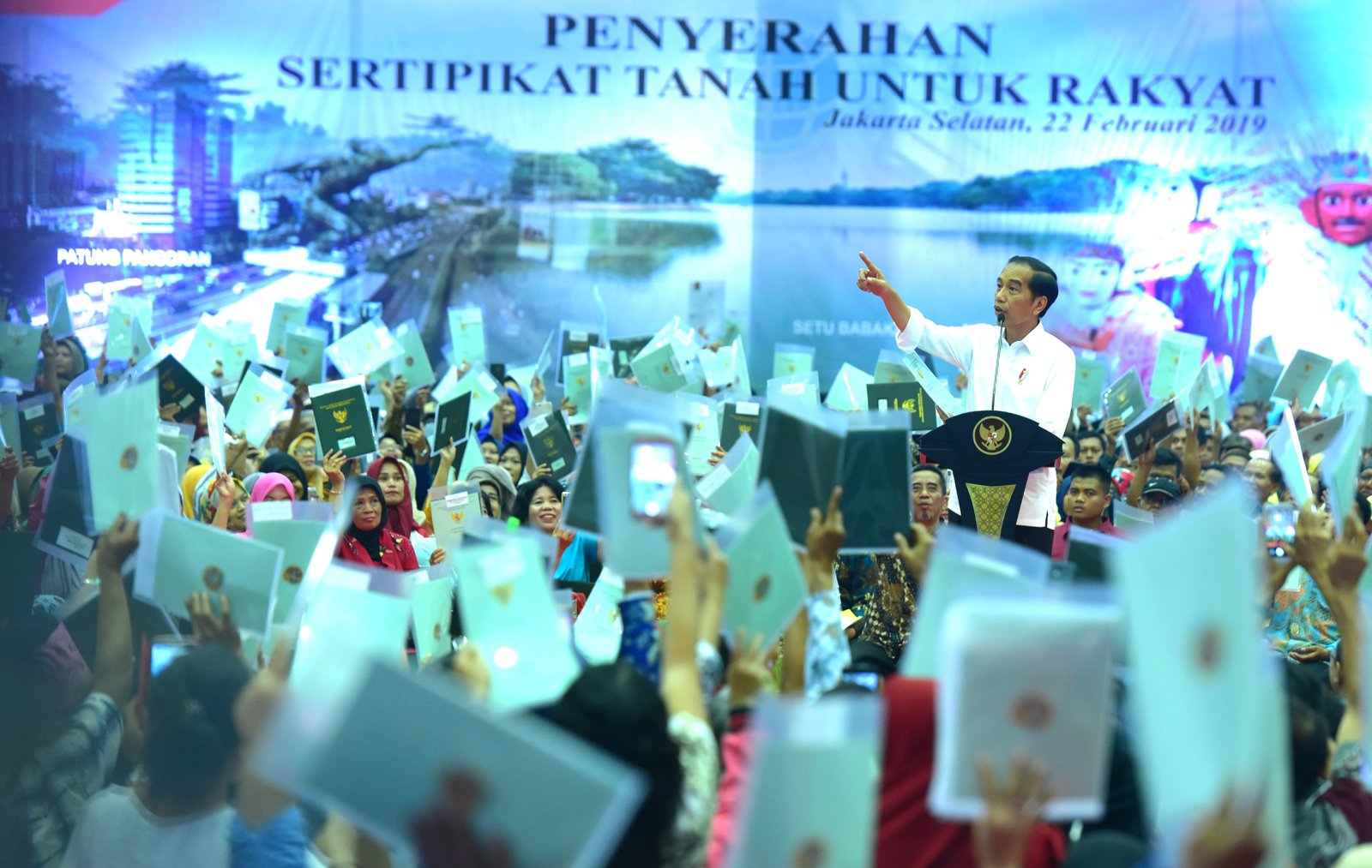 Presiden Jokowi menghadiri acara penyerrahan Sertifikat Untuk Rakyat, di Gelanggang Remaja Kecamatan…