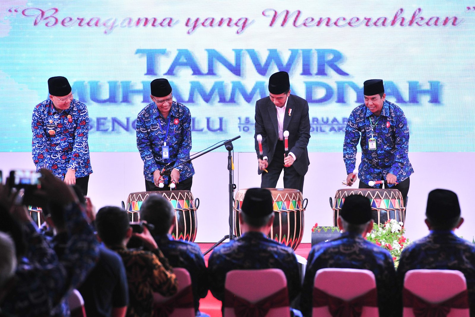 Presiden Jokowi didampingi sejumlah pejabat memukul bedug tanda pembukaan Sidang ke-51 Tanwir…