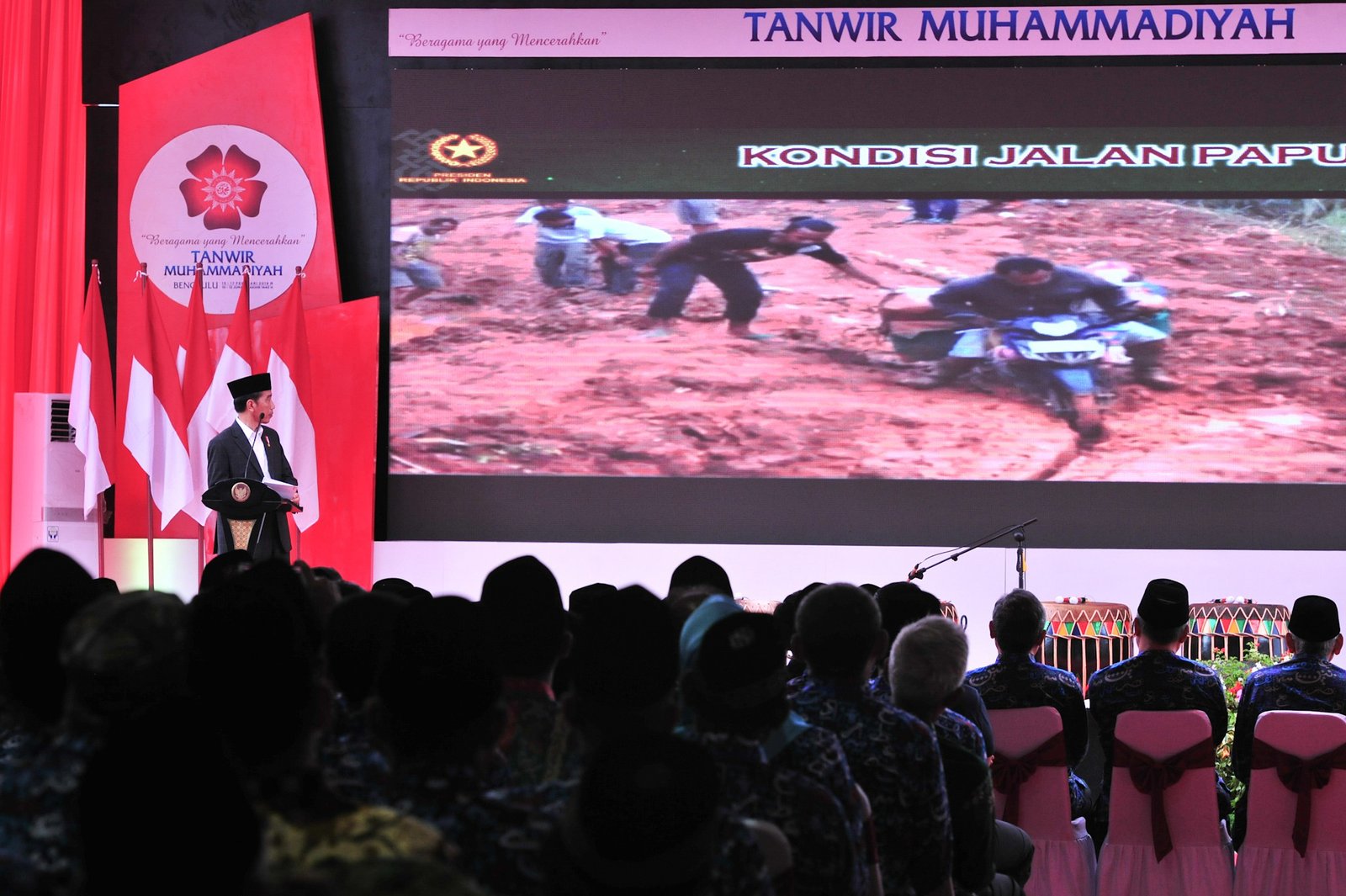 Presiden Jokowi memberikan sambutan pada Sidang ke-51 Tanwir Muhammadiyah, di Balai Raya…