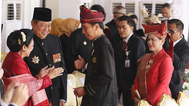 Presiden Jokowi didampingi Ibu Negara Iriana dalam suatu kesempatan bertemu SBY dan…
