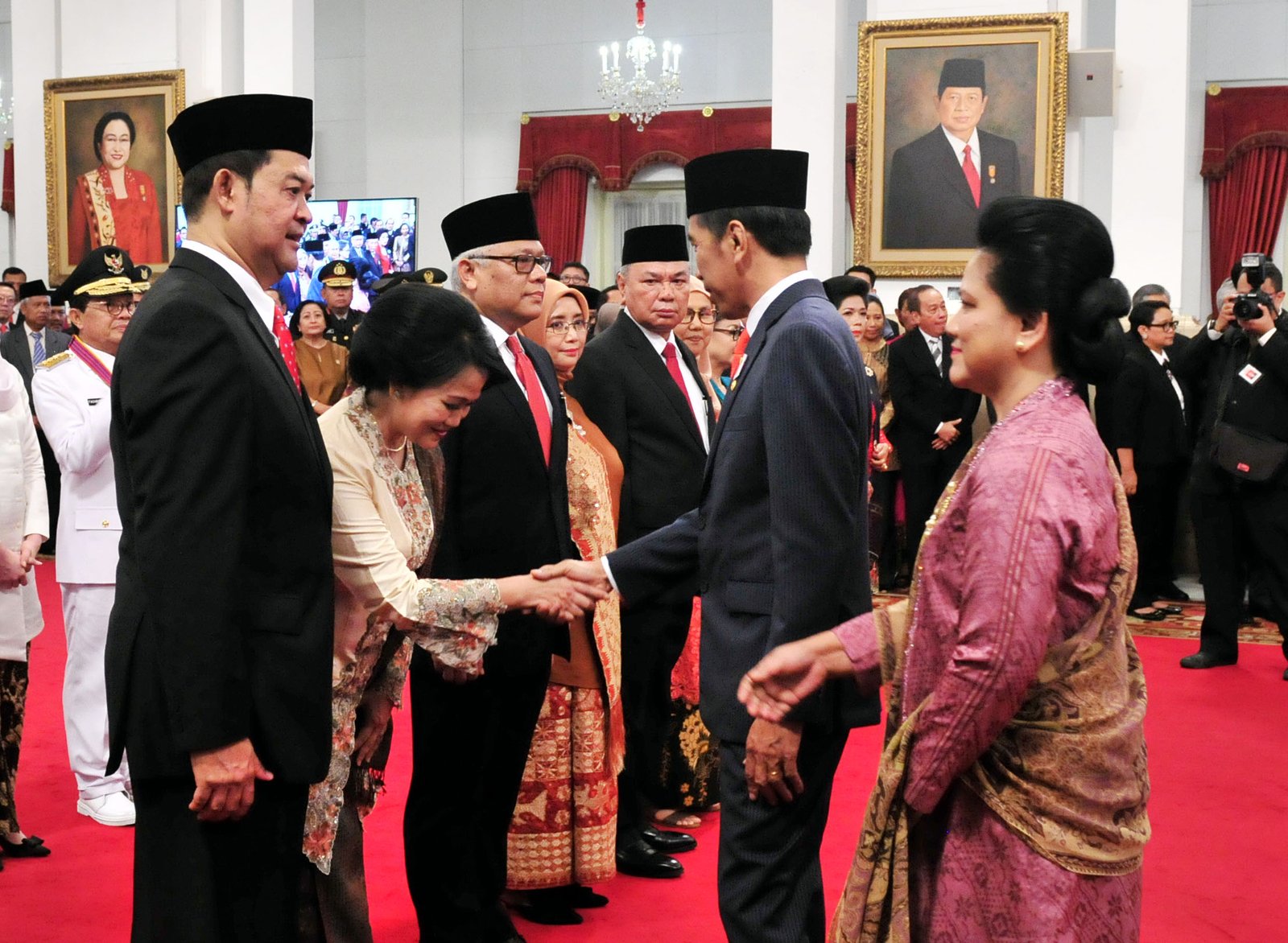 Presiden Jokowi diikuti Ibu Negara Iriana Joko Widodo menyampaikan ucapan selamat kepada…