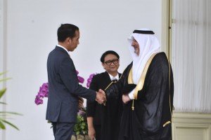 Presiden Jokowi didampingi Menlu berbincang dengan Dubes baru Arab Saudi untuk Indonesia…