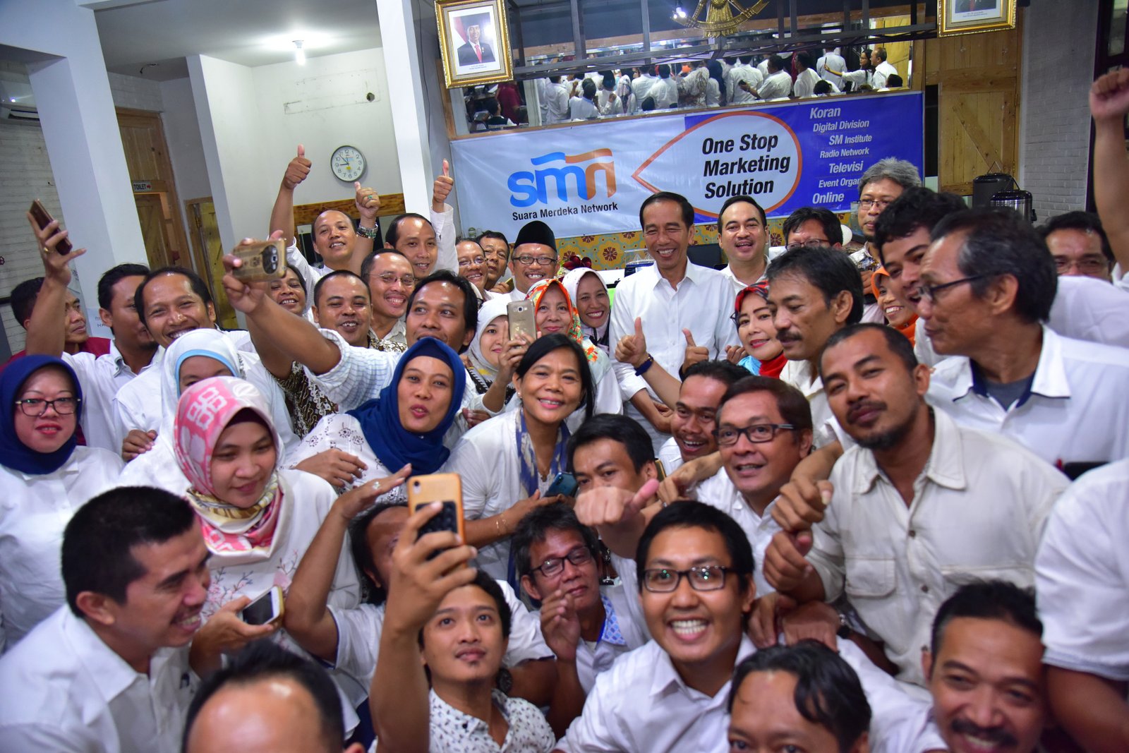 Presiden Jokowi berfoto bersama jajaran redaksi Suara Merdeka, saat mengunjungi kantor redaksi…