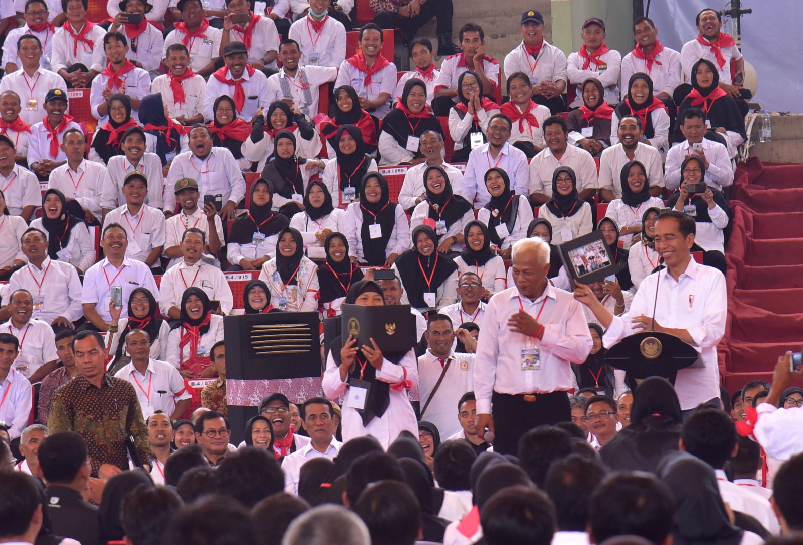 Presiden Jokowi bersilaturahim dengan ribuan THL TBPP, di GOR Jatidiri, Semarang, Jateng,…