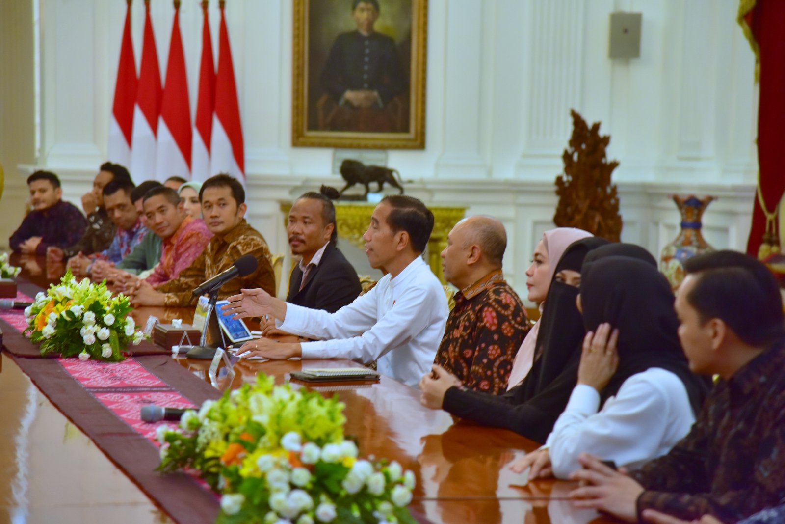 Presiden Jokowi didampingi Koordinator Staf Khusus menerima pengusaha produk halal Indonesia, di…
