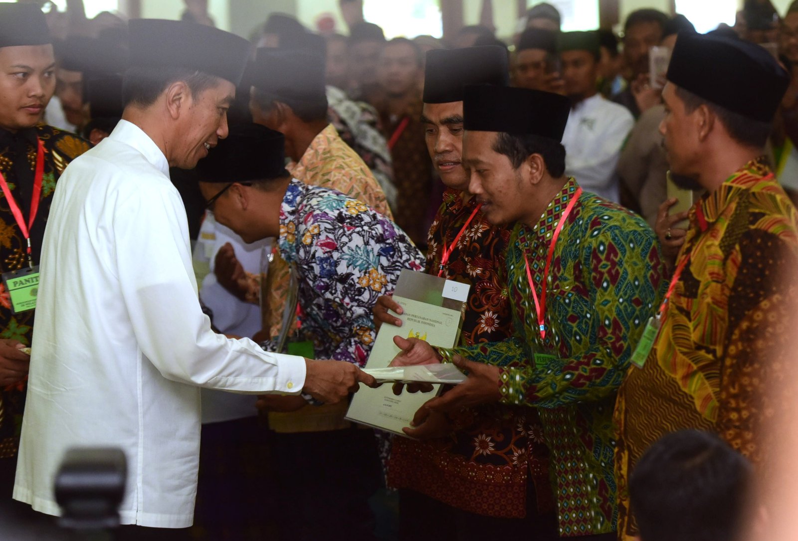 Presiden Jokowi menyerahkan 253 sertifikat wakaf di Masjid Baiturrahman, Kab. Ngawi, Jatim,…