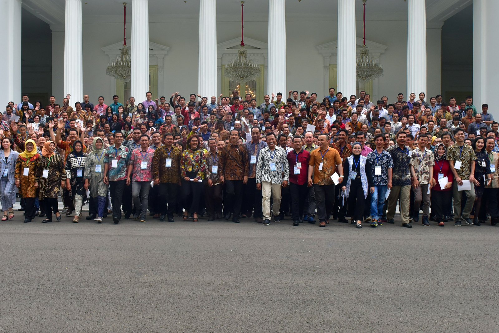 Presiden Jokowi berfoto bersama para nelayan yang hadir dalam silaturahmi di Istana…