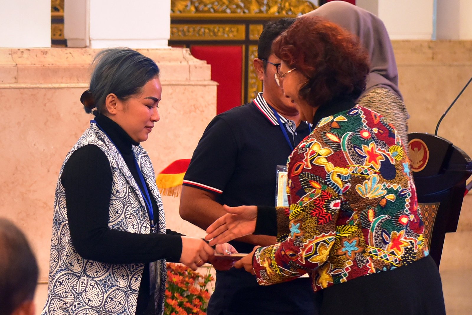 Menteri Kelautan dan Perikanan Susi Pudjiastuti menyerahkan perizinan kepada pengusaha ikan tangkap,…