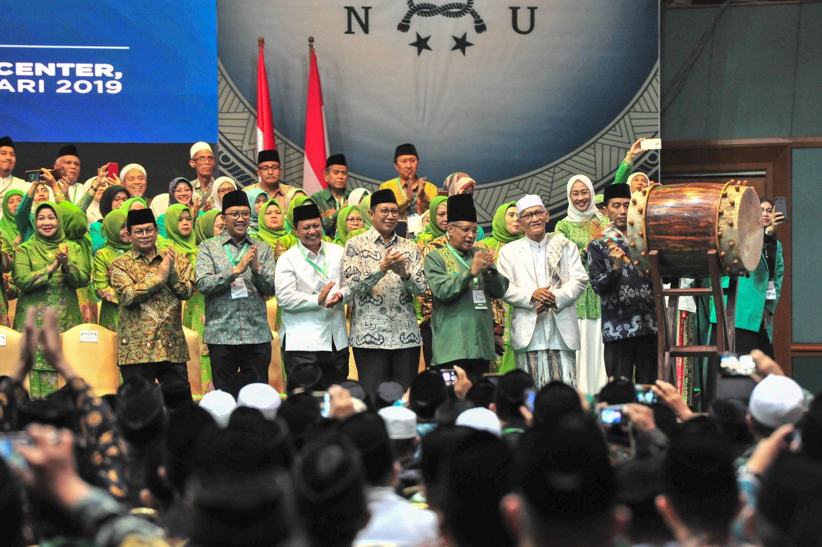Presiden Jokowi memukul beduk tanda pembukaan Konsolidasi Jelang Satu Abad NU, di…