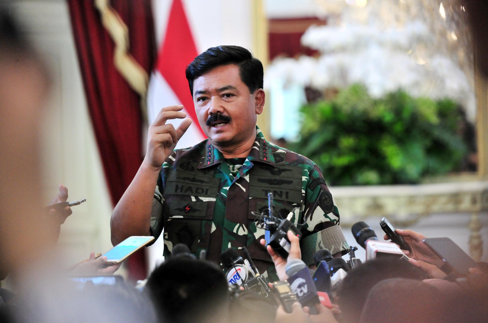 Panglima TNI Marsekal Hadi Tjahjanto menjawab wartawan usai pembukaan Rapim TNI-Polri, di…