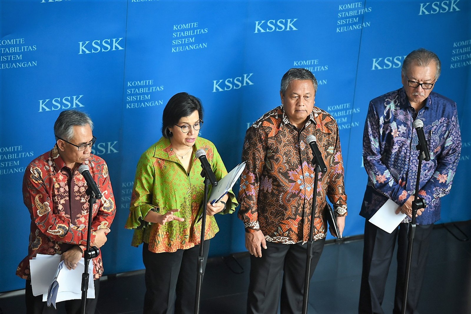 Menkeu Sri Mulyani didampingi Gubernur BI, Ketua OJK, dan Ketua DK LPS…