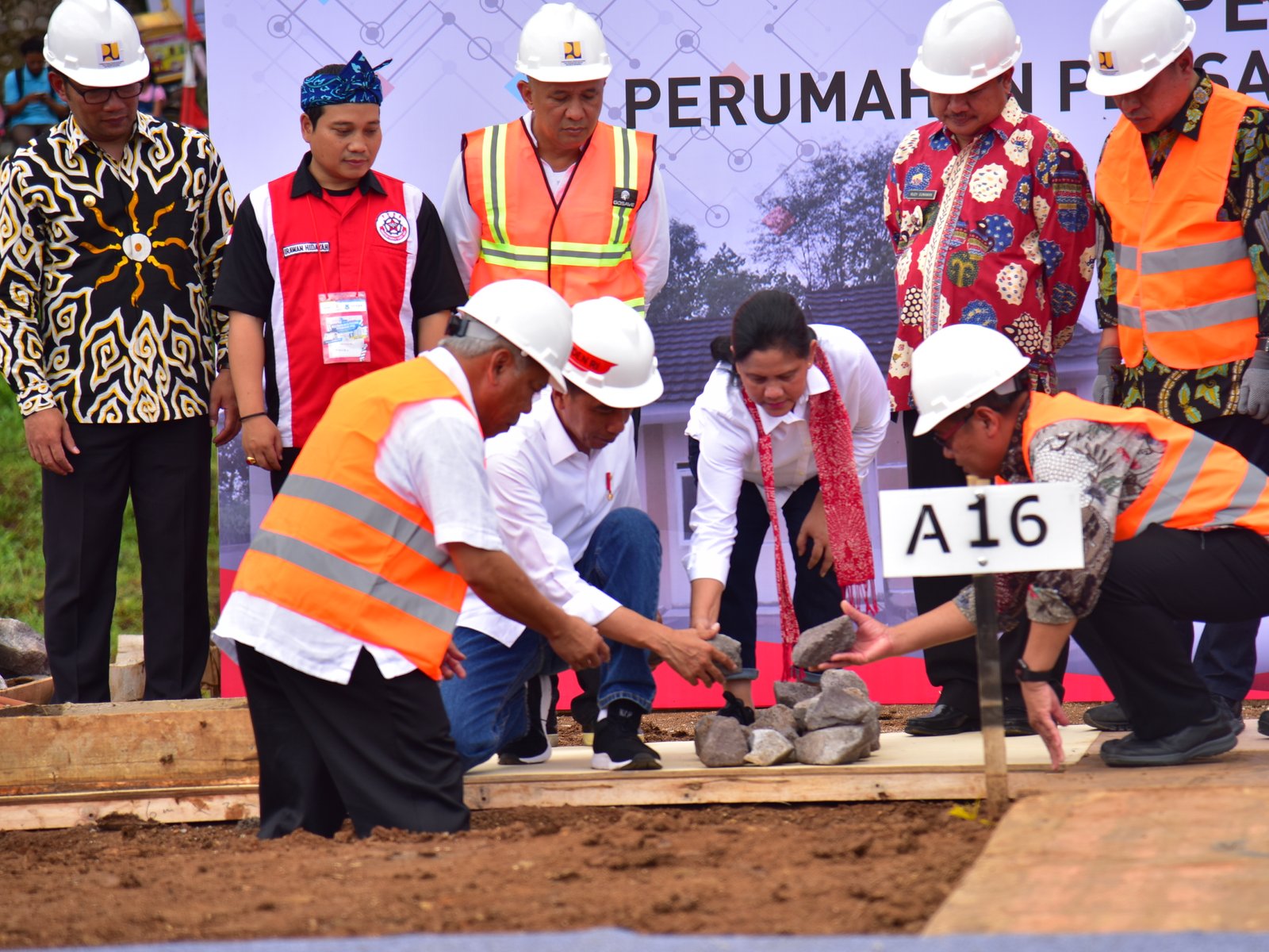 Presiden Jokowi didampingi Ibu Negara Iriana melakukan peletakan batu pertama pembangunan rumah…