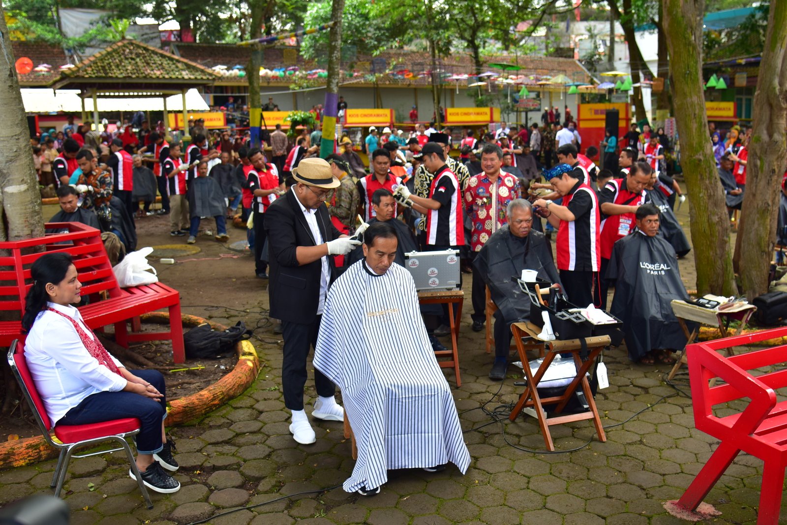 Didampingi Ibu Iriana, Presiden Jokowi Ikuti Cukur Massal di Garut