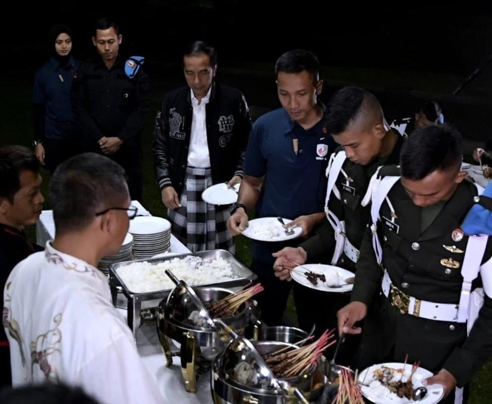 Presiden Jokowi mengantre makanan angkringan yang diundang jelang pergantian tahun di Wisma…