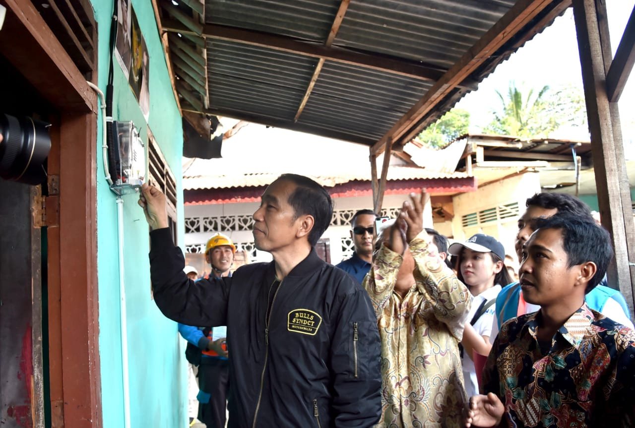 Presiden Jokowi saat melaksanakan program listrik bagi warga tidak mampu di Kelurahan…