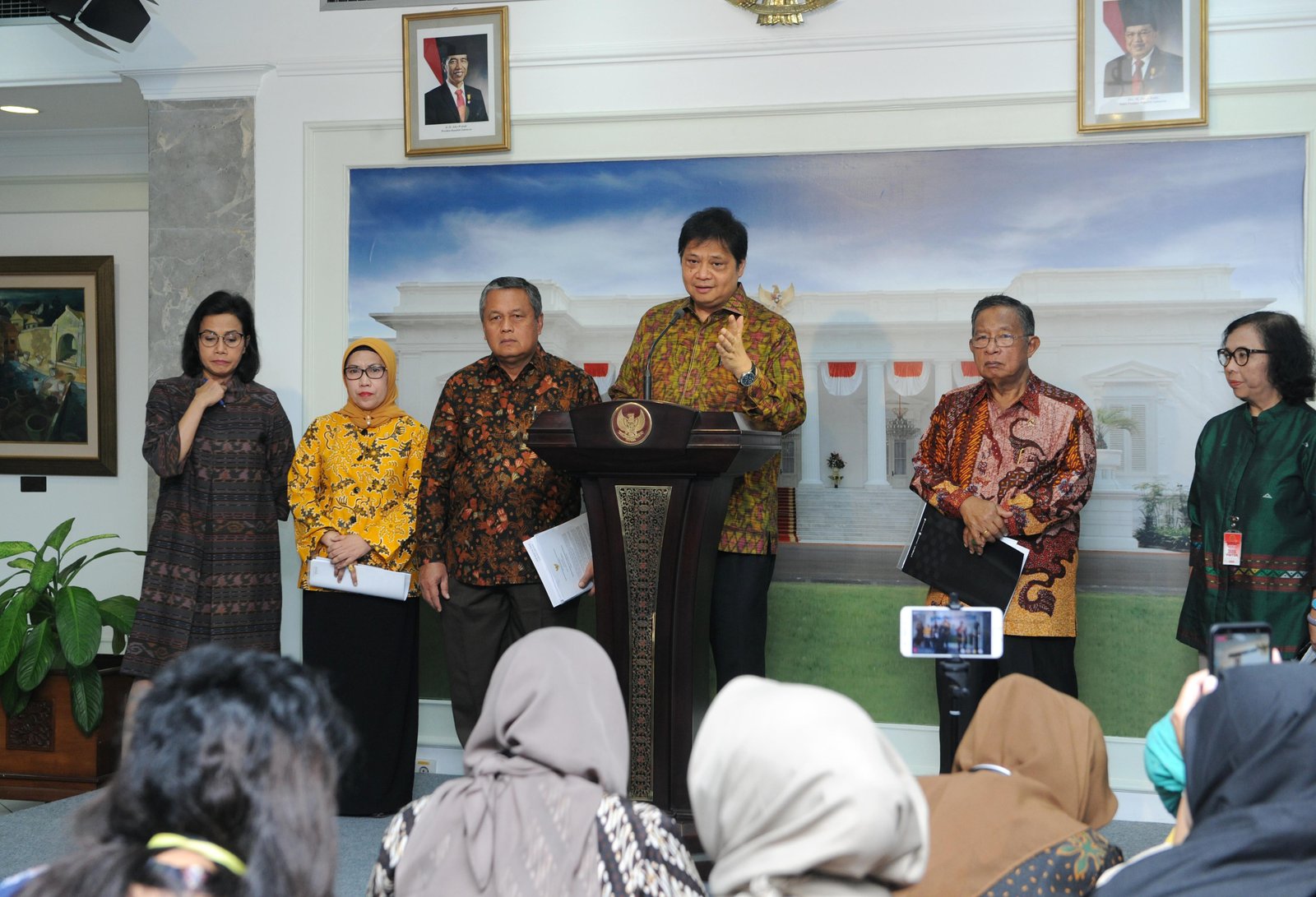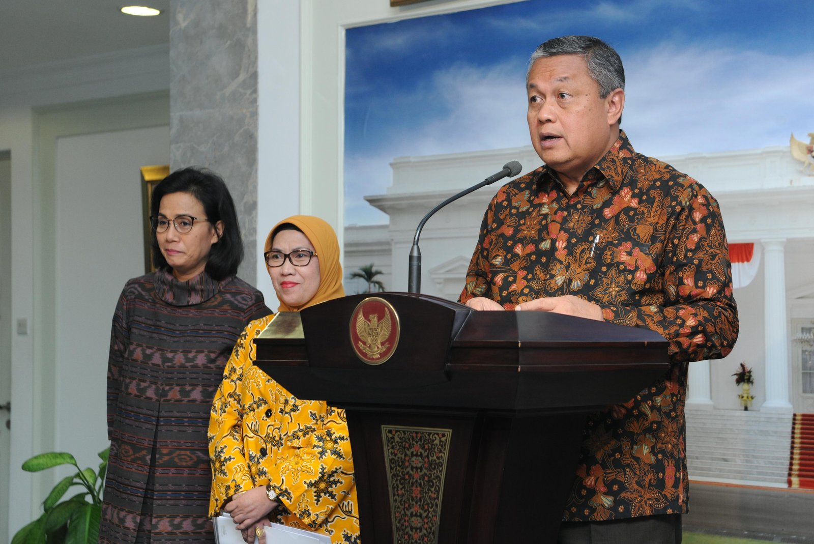 Gubernur BI dalam konferensi pers soal PKE ke-16 di Kantor Presiden, Jakarta,…