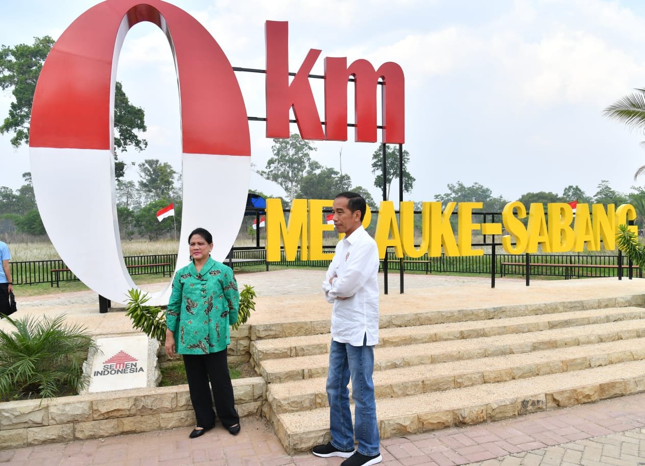 Presiden Jokowi didampingi Ibu Negara Iriana saat meninjau lokasi PLBN Sota, Jumat…