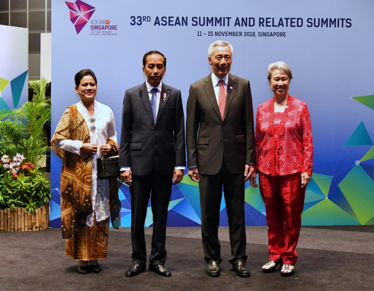 Presiden Jokowi dan Ibu Negara Iriana disambut oleh PM Singapura dan istri…