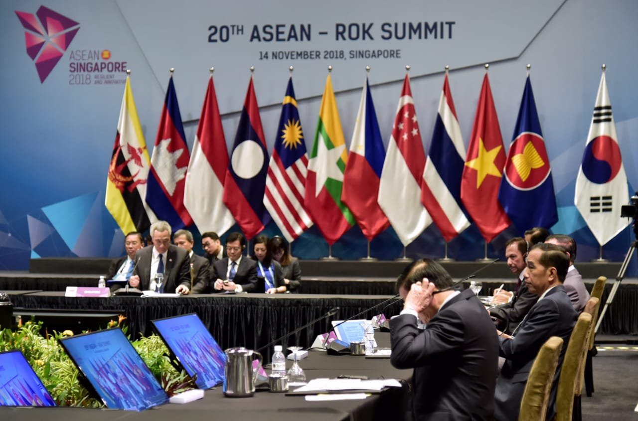 Presiden Jokowi menghadiri KTT ASEAN-Korea, di Suntec Convention Centre, Singapura, Rabu (14/11)…