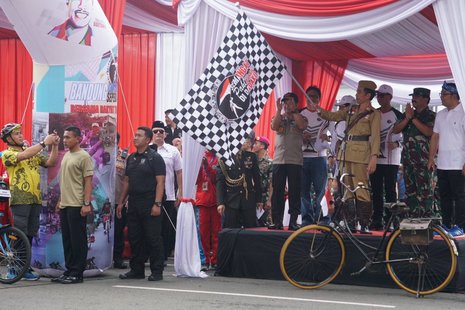 Presiden melepas rombongan gowes Bandung Lautan Sepeda yang dimulai dari depan Gedung…