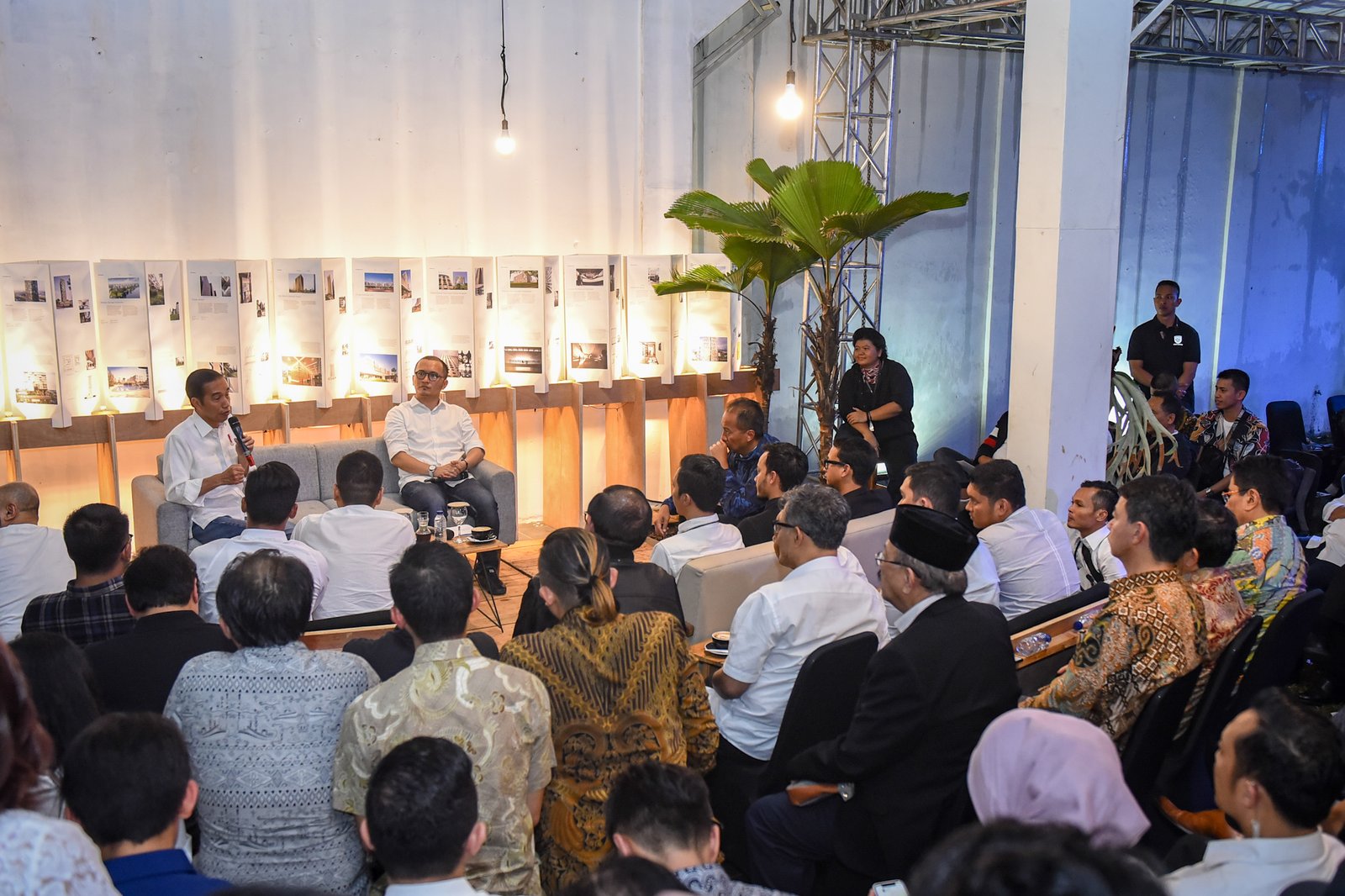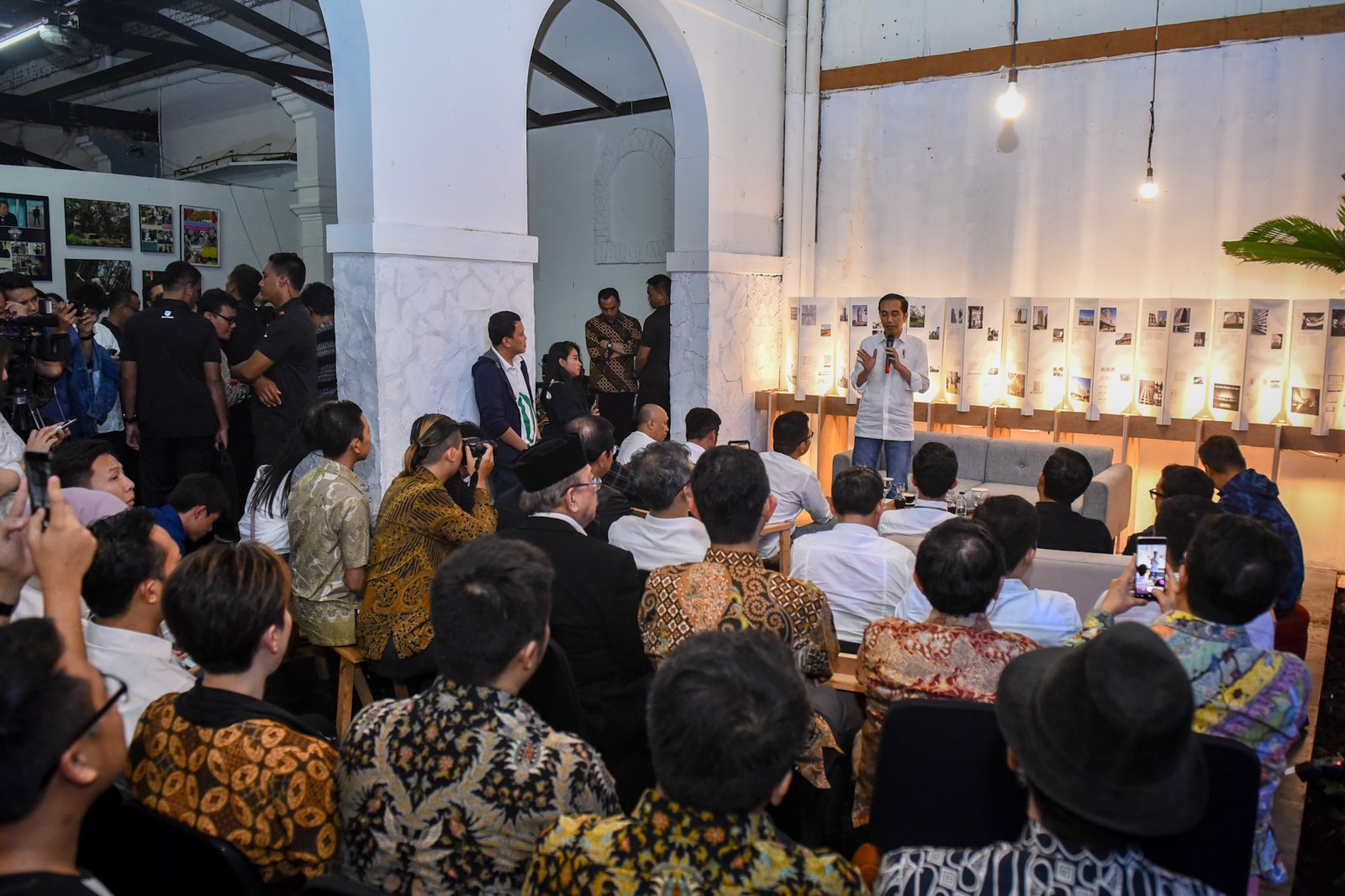 Presiden Jokowi berdialog dengan para pelaku industri kreatif, di Braga, Bandung, Jabar,…