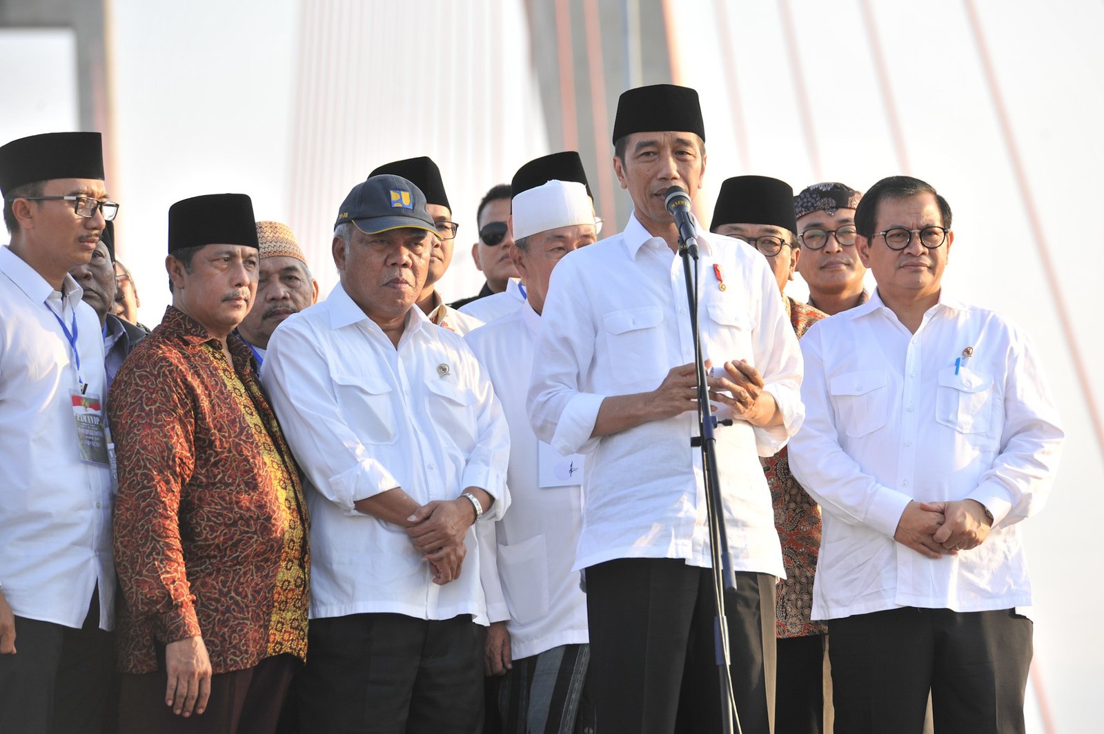 Presiden Jokowi mengumumkan perubahan Jembatan Suramadu menjadi jalan umum bukan tol, di…