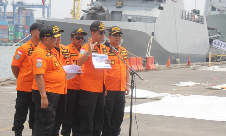 Kepala Basarnas M. Syaugi menyampaikan keterangan pers perkembangan pencarian Lion Air JT610,…
