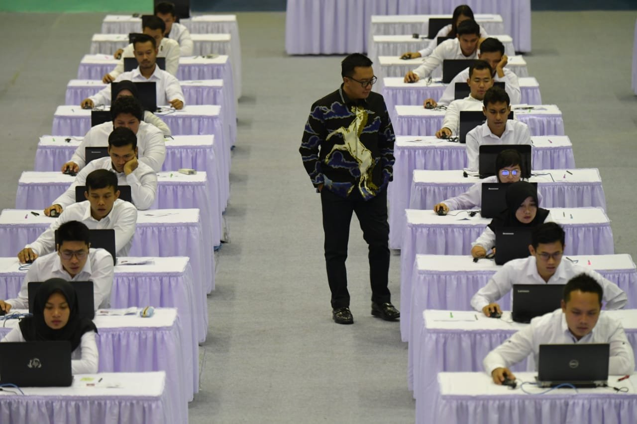 Menpora meninjau peserta Ujian Seleksi Kompetensi Dasar CPNS Atlet Berprestasi di Gedung…